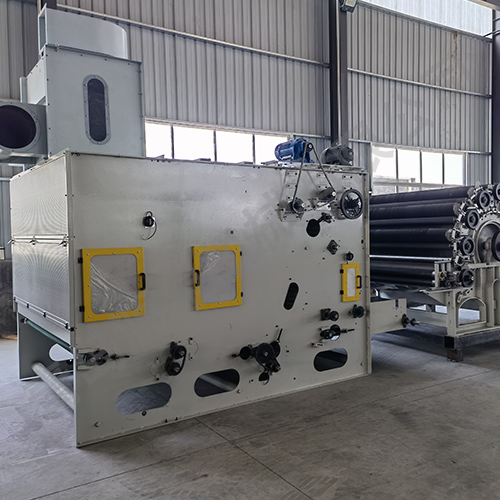 這臺(tái)機(jī)器用于將纖維(開松和混合后)輸送到梳理機(jī)進(jìn)行下一道工序。采用容積式定量振動(dòng)喂入,光電控制,與主開松光電聯(lián)動(dòng),給棉量更加均勻準(zhǔn)確。